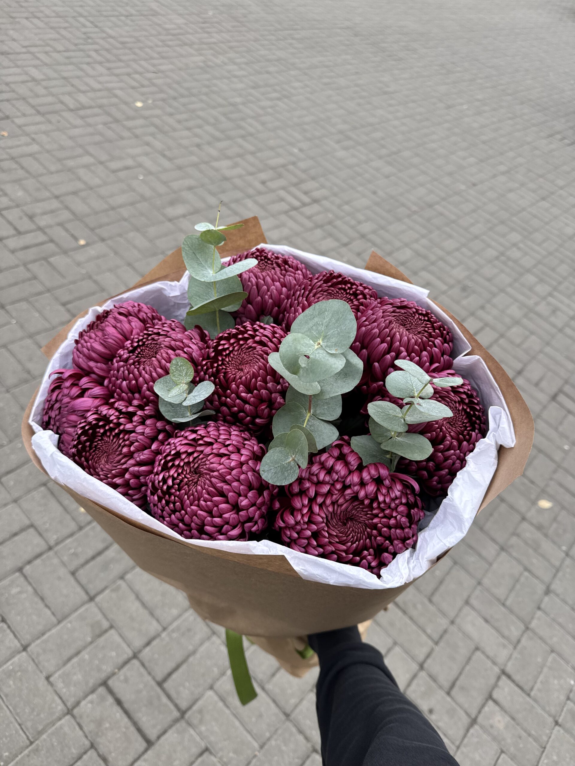 / 11 хризантем «бігуді» з евкаліптом