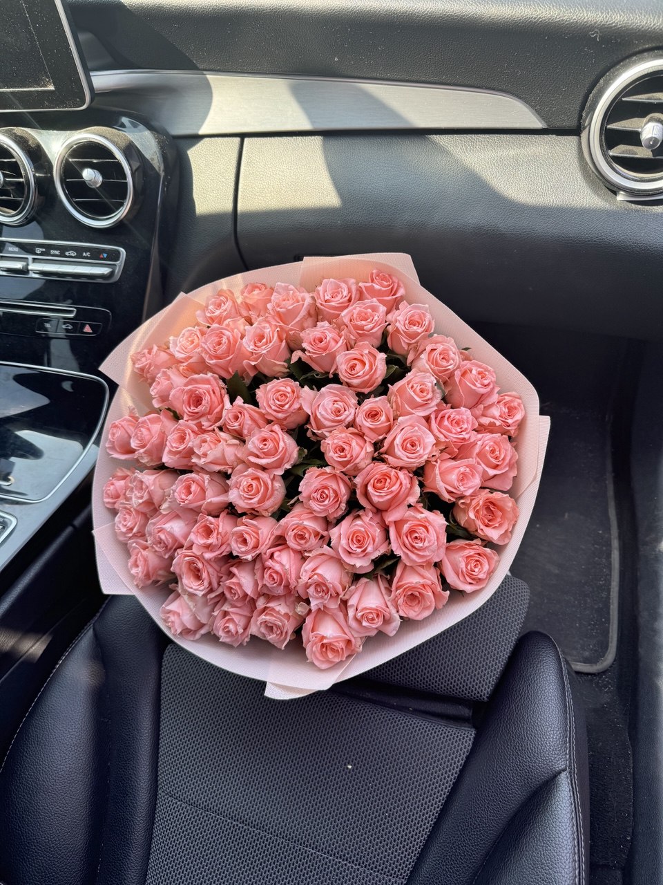Склад : 59 рожевих троянд “Аріана” , фірмове пакування.
