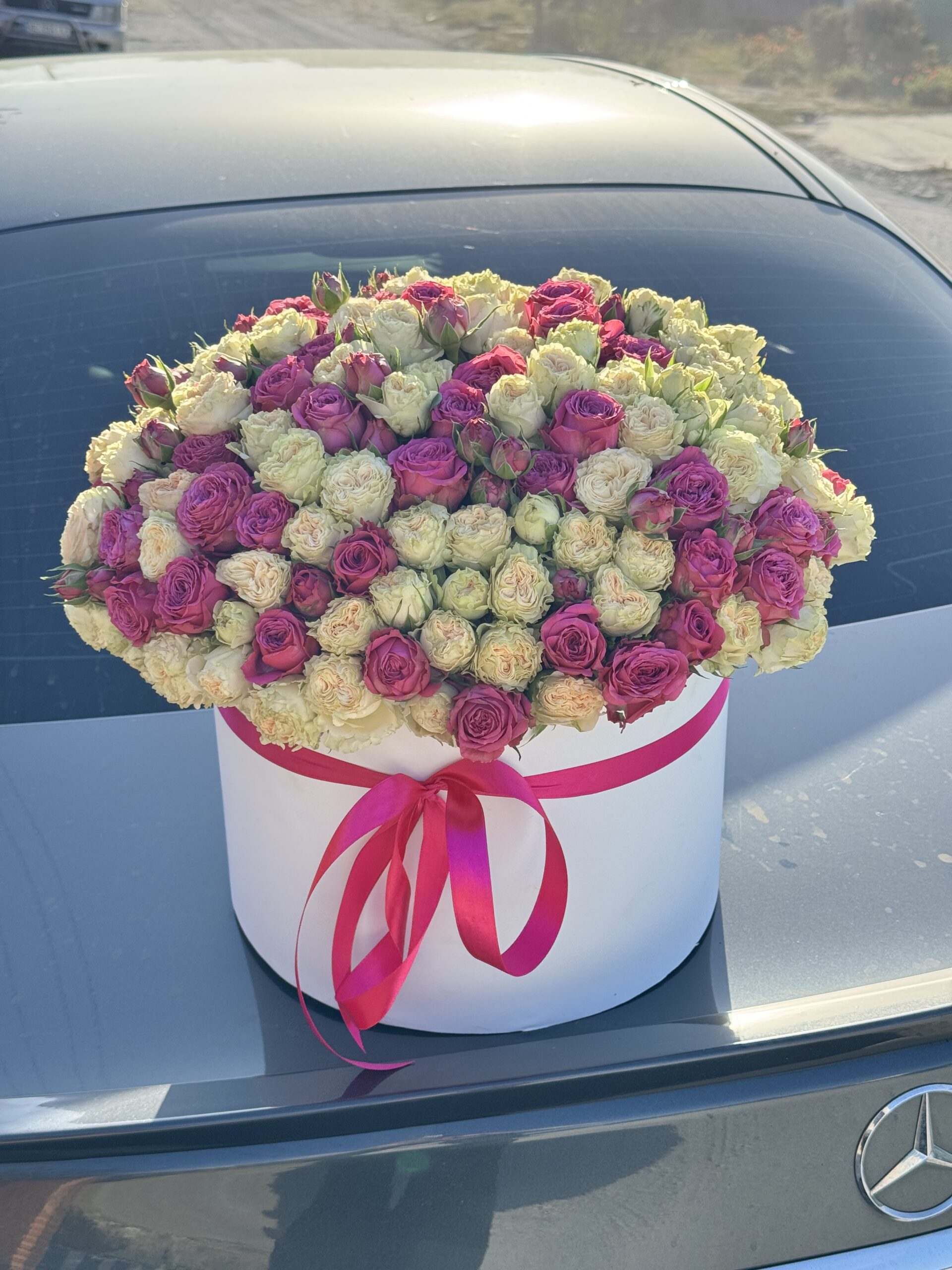 Склад : 51 кущова піоноподібна троянда , коробка.