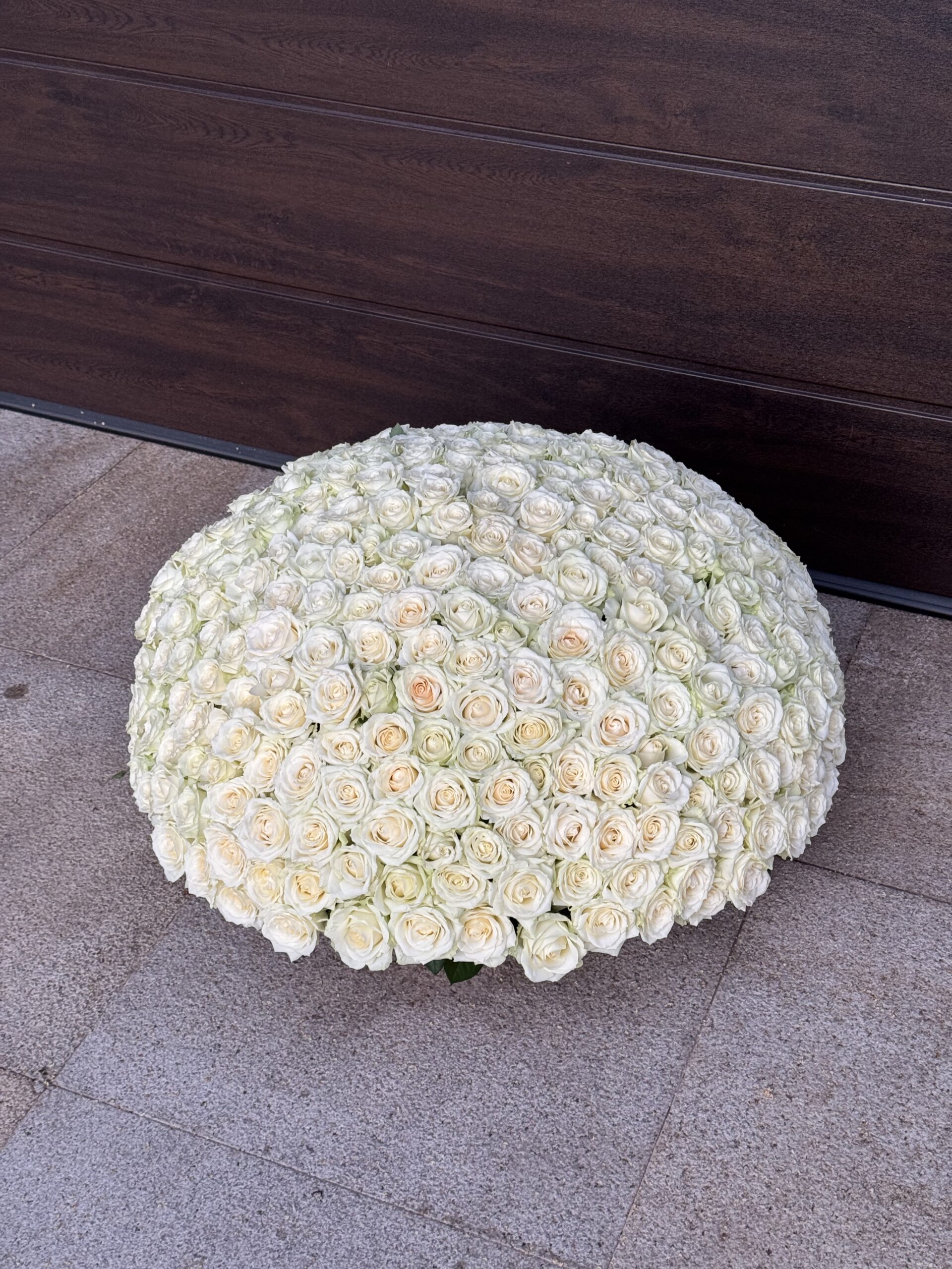 Елегантність і чистота в кожному бутоні. 301 біла троянда — символ щирості, поваги й благородства. Цей кошик стане розкішним акцентом на весіллі, ювілеї чи будь-якому святі. Даруйте світлі емоції — замовте сьогодні!